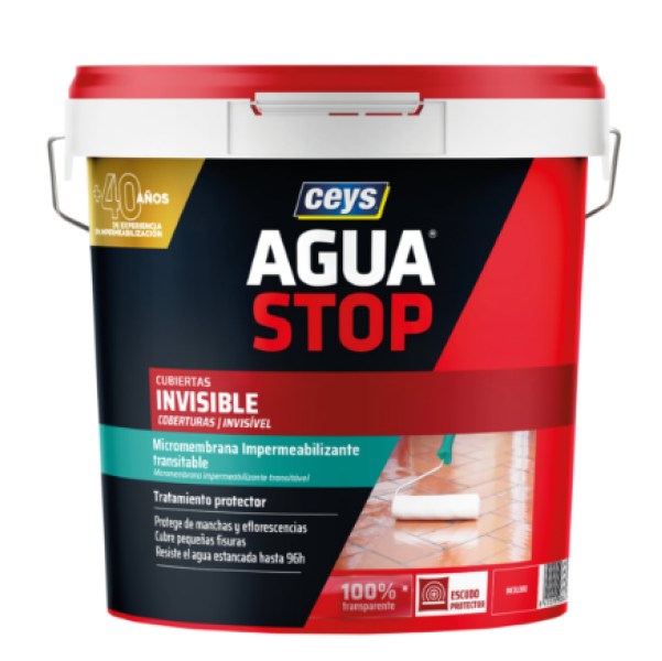 AGUASTOP INVISÍVEL 16LT CEYS- AGUASTOP INVISÍVEL é uma micro membrana impermeabilizante para o tratamento preventivo ou de reparação de coberturas. – Protege o suporte de infiltrações de ág…