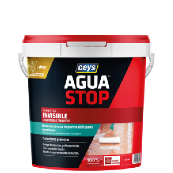 AGUASTOP INVISÍVEL é uma micro membrana impermeabilizante para o tratamento preventivo ou de reparação de coberturas. Protege o suporte de infiltrações de água, sem modificar o seu aspeto original. Forma um recobrimento que resiste al trânsito pedonal e à água estancada.