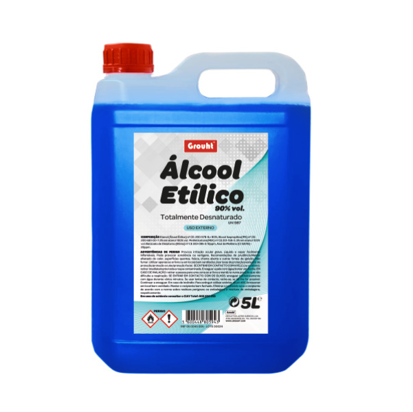 ÁLCOOL DESNATURADO 5LT- Destina-se a soluções de limpeza, solventes específicos especiais, lamparinas, travões de carros pesados, etc.