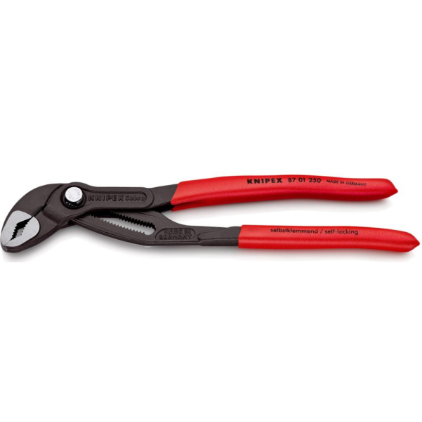 ALICATES EXTENSIVEL 250MM KNIPEX (BOMBA DE ÁGUA) REF.538701250- Alicate ajustável em aço elétrico cromo-vanádio, forjado e temperado;- Regulação à medida da peça através da simples pres…