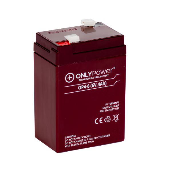 BATERIAS 6V 4AH VRLA ONLYPOWERTipo:- Chumbo;Tensão:- 6V;Capacidade:- 4Ah;Medidas:- 70x47x106mm.