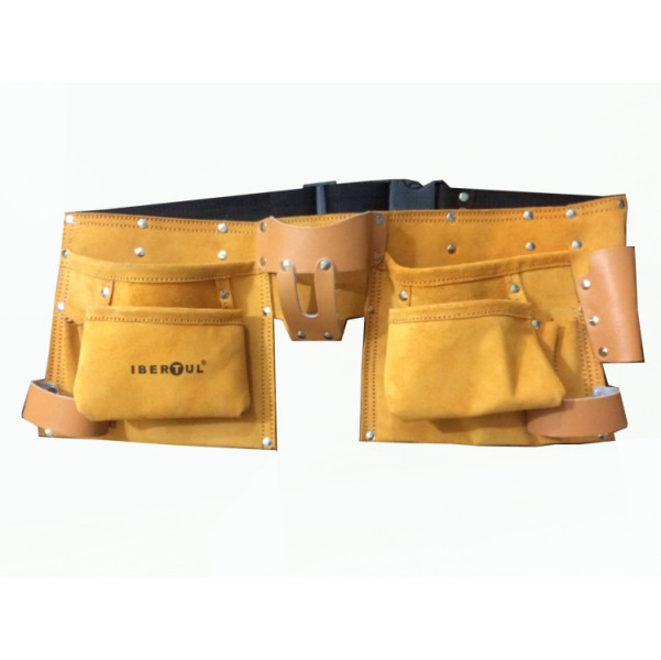 BOLSA FERRAMENTA COURO DUPLA 12 BOLSOS IBERTUL