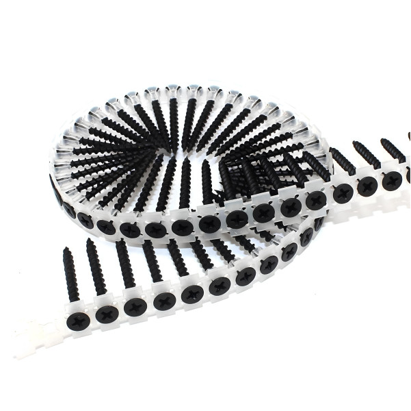 CINTAS PARAFUSOS 3.5X25MM (PENTE) CX.1000UNID. P/APARAFUSADORA PLADUR CHEMITOOL- Os parafusos incluídos no conjunto têm um diâmetro de 3,5 mm, têm 25 mm de comprimento e têm uma cabeça de par…
