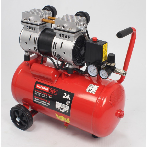 COMPRESSOR DE AR SILENCIOSO 24 LT MADER REF.09372Compressor silencioso – com baixo nível de ruído.Portátil – Leve e fácil de transportar.Sem óleo.Grande capacidade de produção de ar com meno…