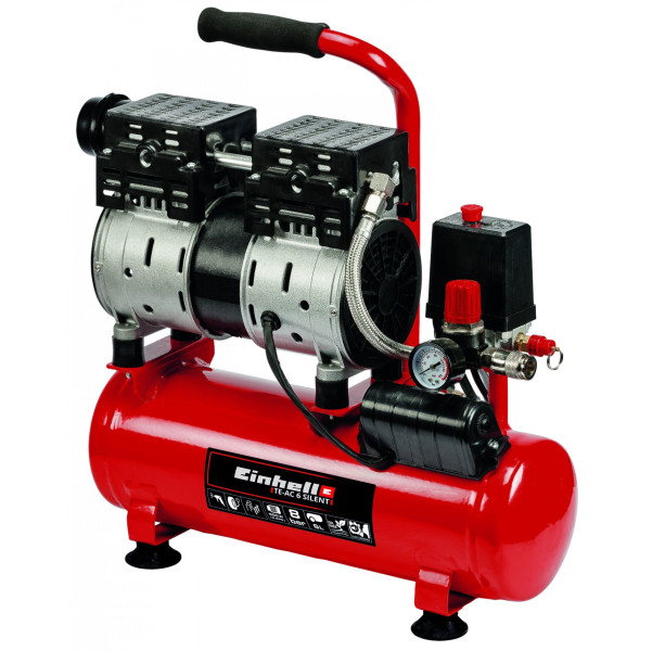 COMPRESSOR SILENCIOSO TE-AC 6 SILENT EINHELL REF.4020600Alimentação 220-240 V | 50 HzPotência máxima do motor 550 W 0.8 PSVelocidade do motor 1450 min^-1Velocidade da bomba 1450 min^-1Capacidad…