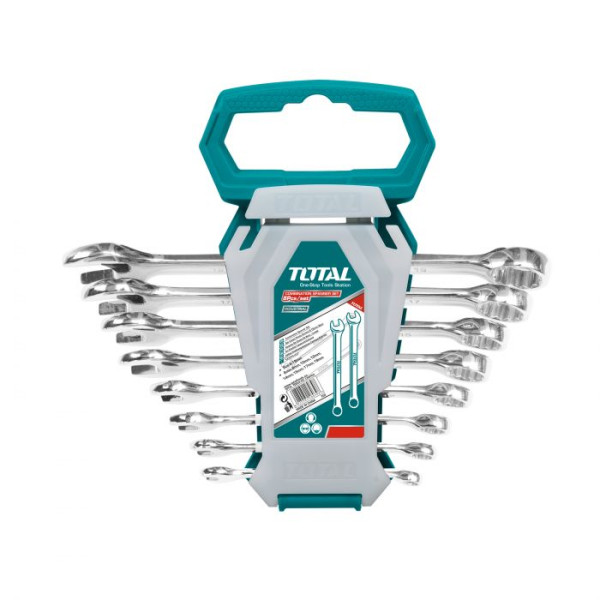 CONJUNTOS 8 CHAVES COMBINADAS TOTAL REF.THT102286‣ Medidas de 6 – 8 – 10 – 12 – 14 – 15 – 17 – 19 mm. ‣ Fabricadas em Cr-V