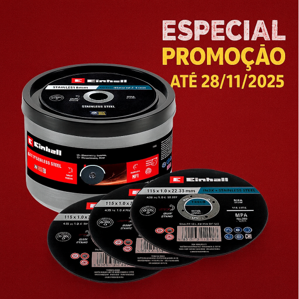 DISCO C/ INOX 115X1.0MM EINHELL – PREÇO EXCLUSIVO PARA 50 UNIDADES.- Discos de corte extrafinos para metalurgia, que oferecem desempenho otimizado, corte extremamente suave e longa vida útil.- …