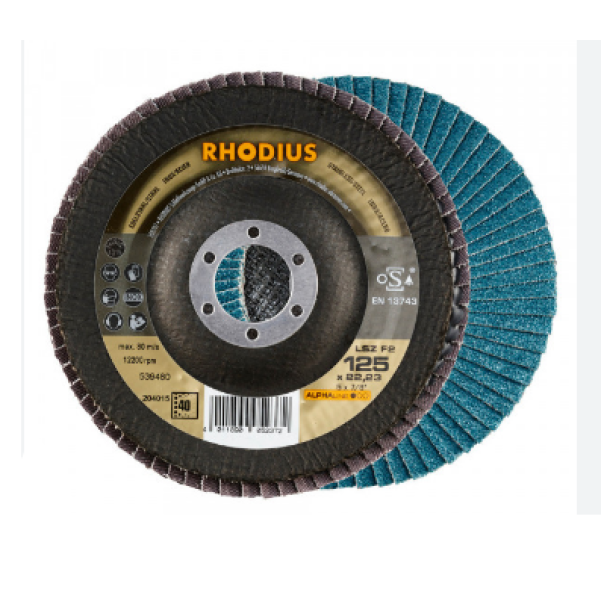 DISCO LAMELADO 115MM 40/60/80 RHODIUS IMPORTANTE:IMAGEM ILUSTRATIVA- Disco flap de zircônio com prato de tecido de fibra.- Muito bons resultados em aço inoxidável e os melhores resultados em a�…
