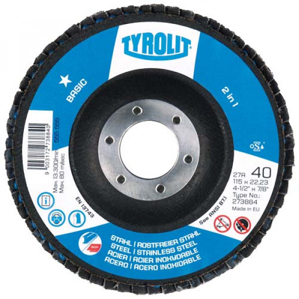 DISCO LAMELADO Ø115mmTYROLIT CÔNCAVO STANDARD 27ADisco De Lixa Lamelados Para Trabalhar InoxGrão 60