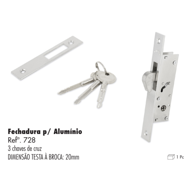 FECHADURA GANCHO 20MM REF.728- CONTÊM: 3 CHAVES DE CRUZ.- DISTÂNCIA DA TESTA A BROCA: 20MM.