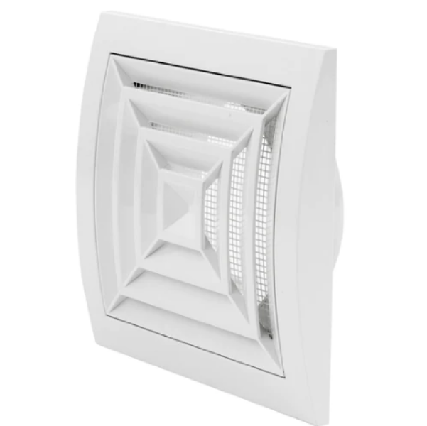 - Grelhas quadradas em ABS de grande qualidade, para colocar em teto ou saídas de ar ou ventiladores. - Estas grelhas tem divisórias direcionais, que permitem que a passagem do ar de dentro para fora, este seja espalhado em quatro sentidos. - Têm rede para impedir a passagem de folhas, poeiras ou insetos.