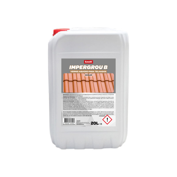 HIDROFUGANTE AQUOSO 20LT IMPERGROU É um verniz aquoso incolor brilhante usado em superfícies inclinadas sobre materiais porosos e expostos ao tempo, tais como: telhas de barro, cimento, fibrocim…