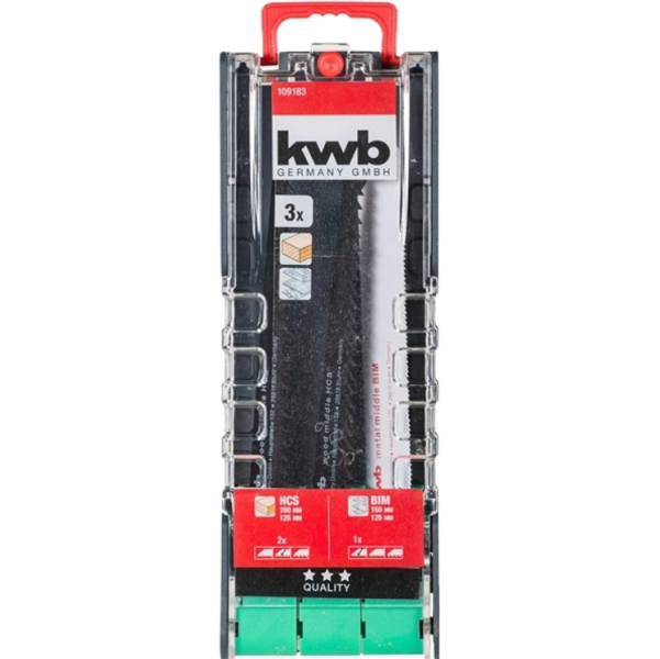 JOGO DE 3 LAMINAS DE SERRA SABRE SORTIDAS REF.491091832 x aço carbono HCS para trabalhar madeira, endurecidas, dentes retificados e ajustados com precisão, para madeira de construção e paredes …
