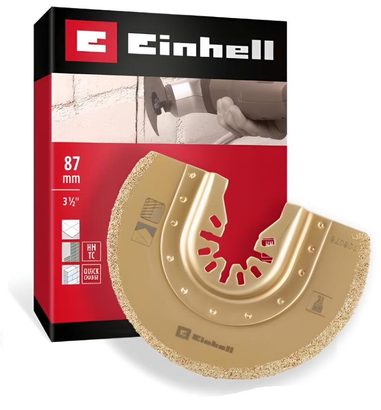 LÂMINA MULTIFERRAMENTAS DIAMANTE 87MM EINHELL REF.49708078TAMANHO:80MM.PROFUNDIDADE:12MM.FUNCIONA COM MÁQUINAS DE ASPIRAÇÃO DE PÓ.PERFEITO PARA CANTOS.SISTEMA UNIVERSAL.PARA RETIRAR ARGAMASSA E COLA DE AZULEJOS.