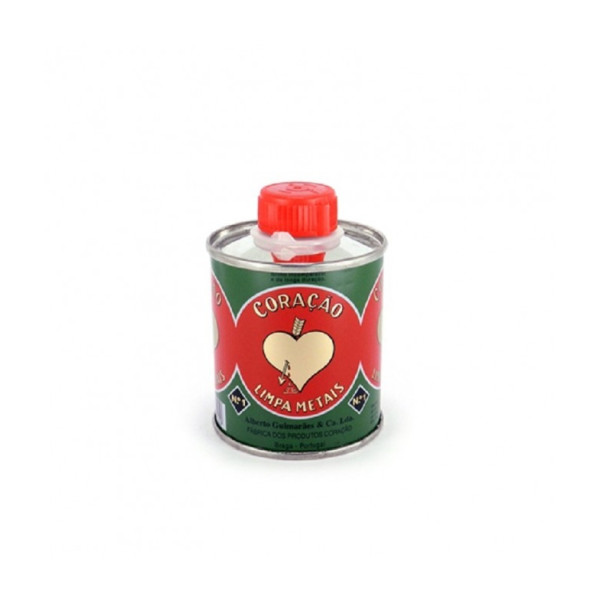 Limpa Metais Coração em lata de 125ml. Aplica-se com um pano macio, deixa-se secar e puxa-se o brilho com um pano seco. Protege e conserva sem atacar os metais, proporcionando um brilho incomparável e de longa duração. Amorosamente fabricado em Braga.