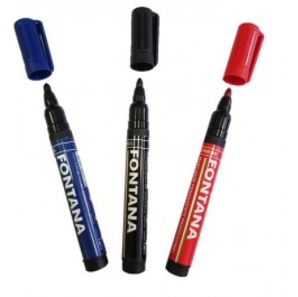 MARCADORES UNIVERSAIS AZUL PRETO E VERMELHO PONTA GROSSA- Tinta permanente à base de álcool.