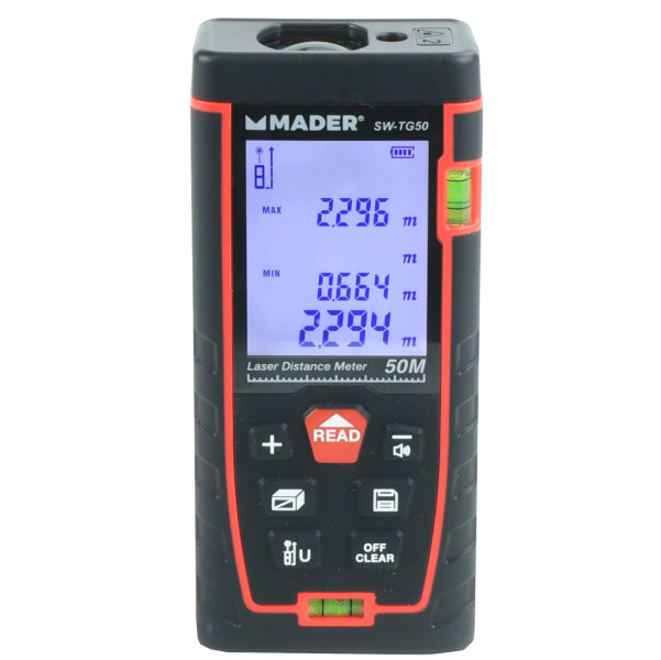 MEDIDOR LASER 50MT MADER REF:84660Alcance0.05 – 50mPrecisão± 2mmLaserVermelhoAutonomía8000x Medição SimplesBateria2x 1.5V AAAEspecificaçõesMedição de áreaMedição de volumeTeorema de Pit…