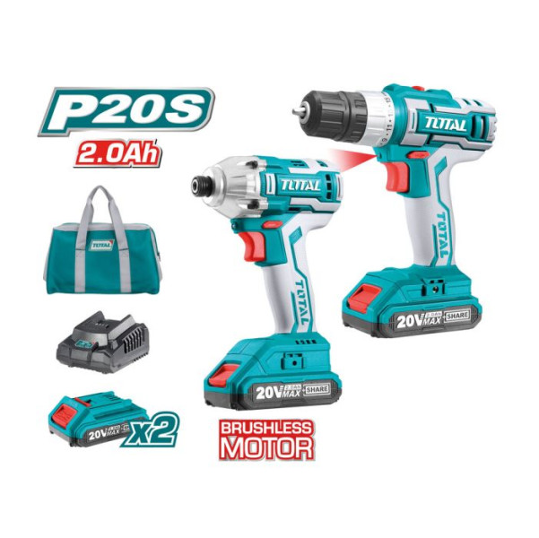 PACK BERBEQUINS / APARAFUSADORAS A BATERIA + APARAFUSADORAS IMPACTO 1/4 A BATERIA TOTAL REF.TCKLI2006- Aparafusadora com força máxima de 45 Nm.