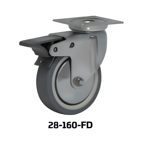 RODIZIO GIRATÓRIO 50MM C/TRAVÃO BORRACHA BPG2 PCL2-FD GAYNER- Núcleo de plástico de cor cinza ou monobloco de plástico de cor preta.- Banda de borracha de cor cinza.